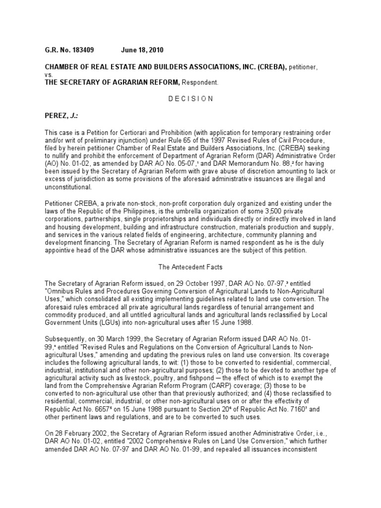 filed by herein petitioner Chamber of Real Estate and Builders Associations, Inc. (CREBA) seeking