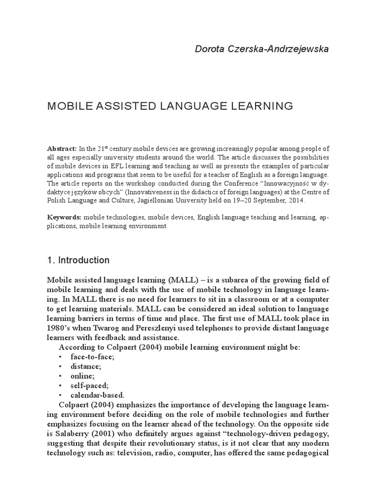 Dorota Czerska-Andrzejewska ▪ Mobile assisted language learning 45