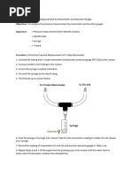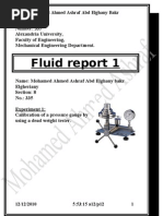 erned by the principle of hydro statics which says that Finally the obtained data for manometer 1 was: