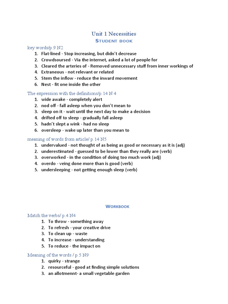 Unit 1 Necessities