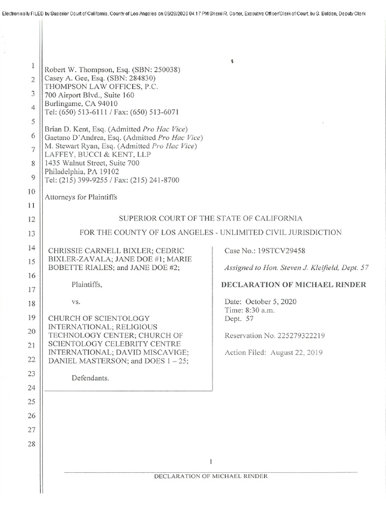 Bixler v. Scientology: Rinder Declaration (Service of Miscavige)