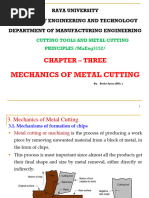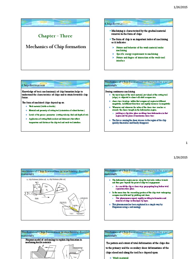understand the characteristics of chips and to attain favorable chip the uncut layer of the work material, just ahead of the cutting tool