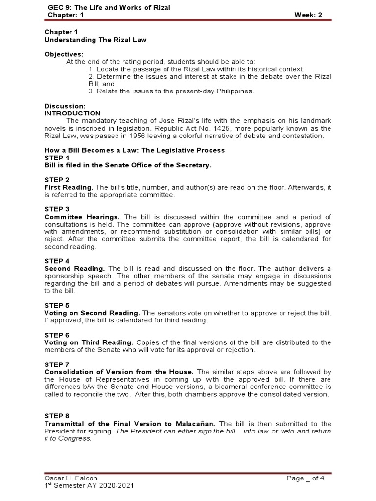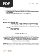 SECTION 1. Courses on the life, works and writings of Jose Rizal, particularly his