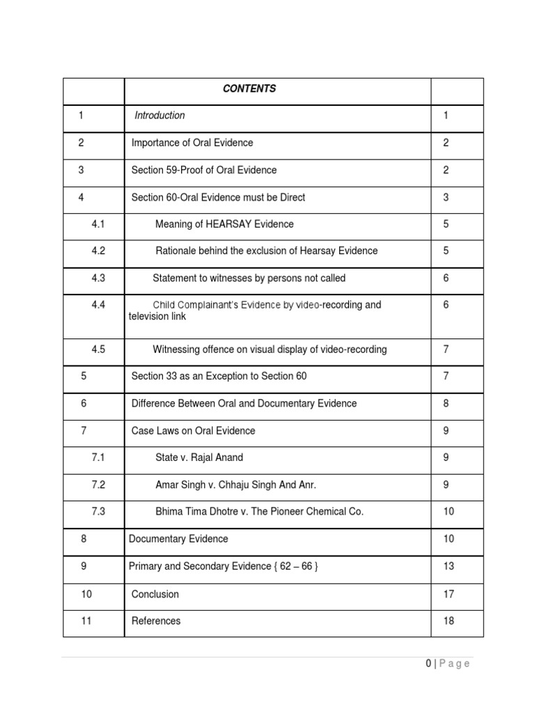 evidence works which has been divided into two main heads- Oral and