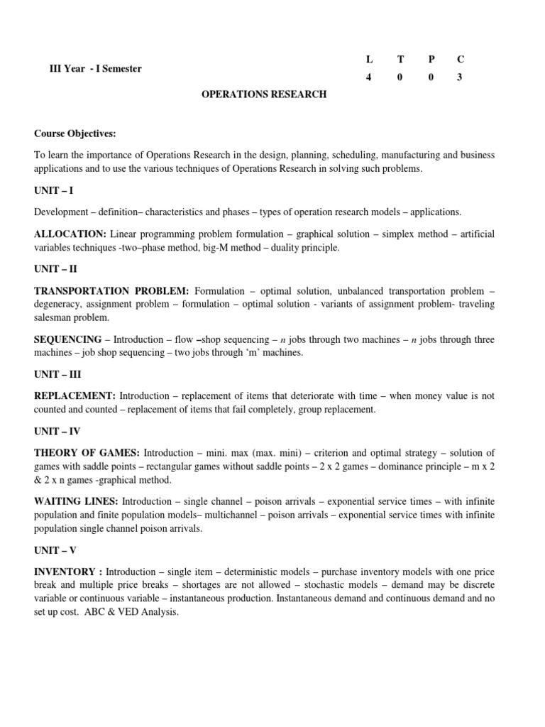 applications and to use the various techniques of Operations Research in solving such problems.
