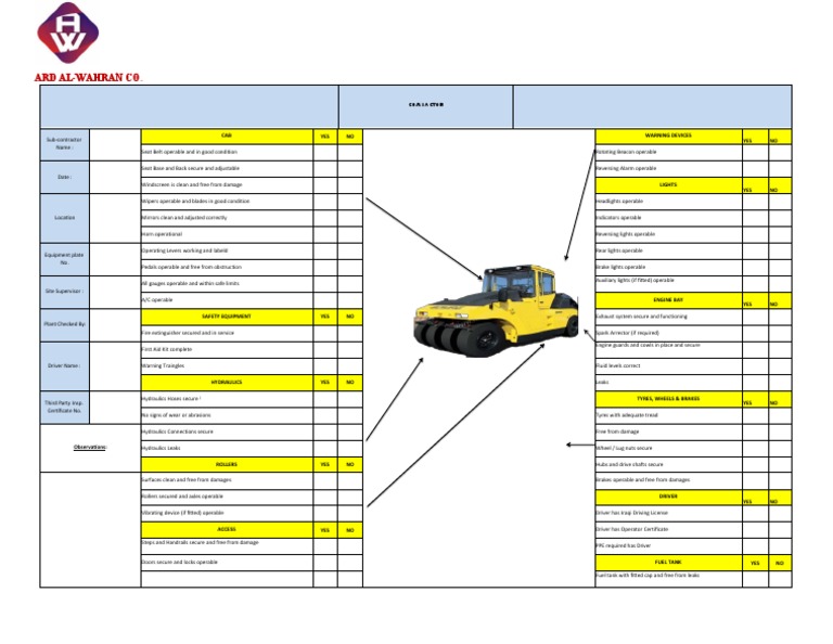 SAFETY EQUIPMENT YES NO Exhaust system secure and functioning