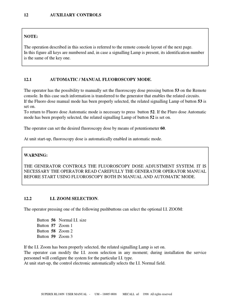12.1 AUTOMATIC / MANUAL FLUOROSCOPY MODE.