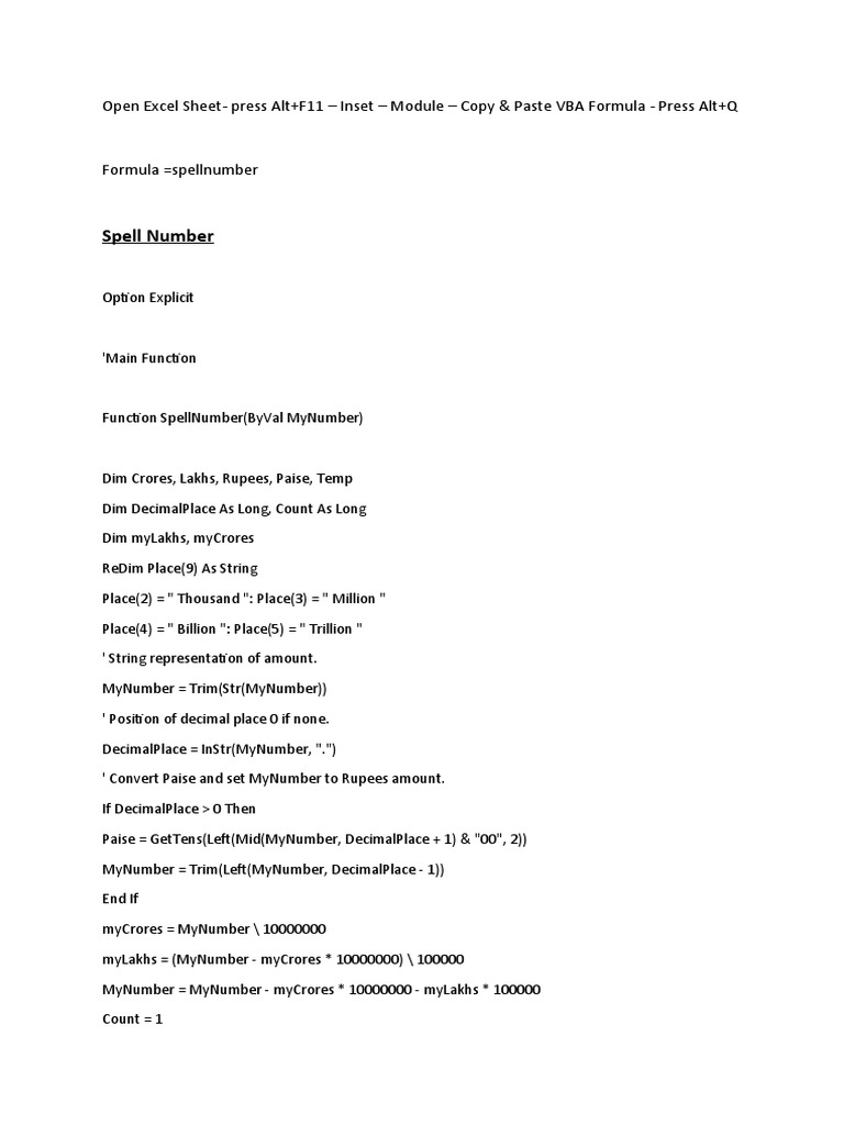Function SpellNumber(ByVal MyNumber)