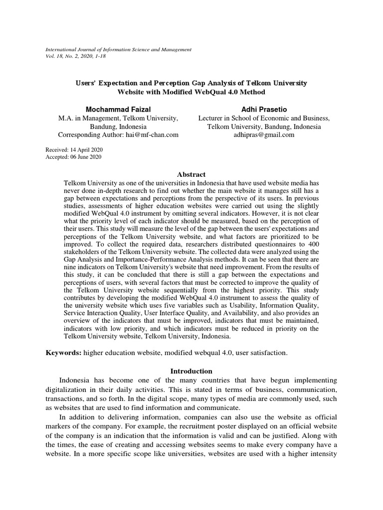 2 Users’ Expectation and Perception Gap Analysis of Telkom University …