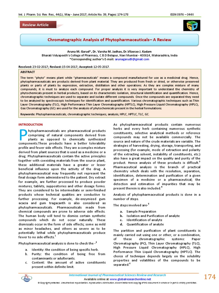 Chromatographic Analysis of Phytopharmaceuticals - A Review