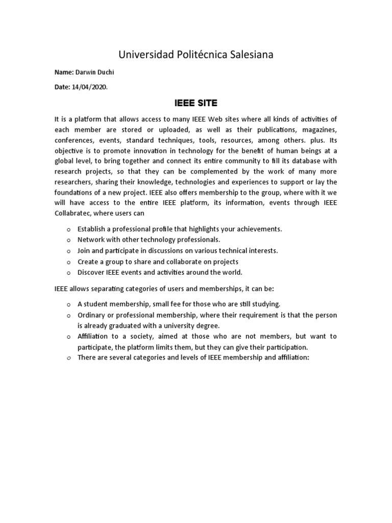 o There are several categories and levels of IEEE membership and affiliation: