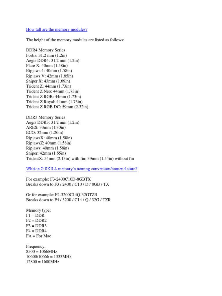 The height of the memory modules are listed as follows: