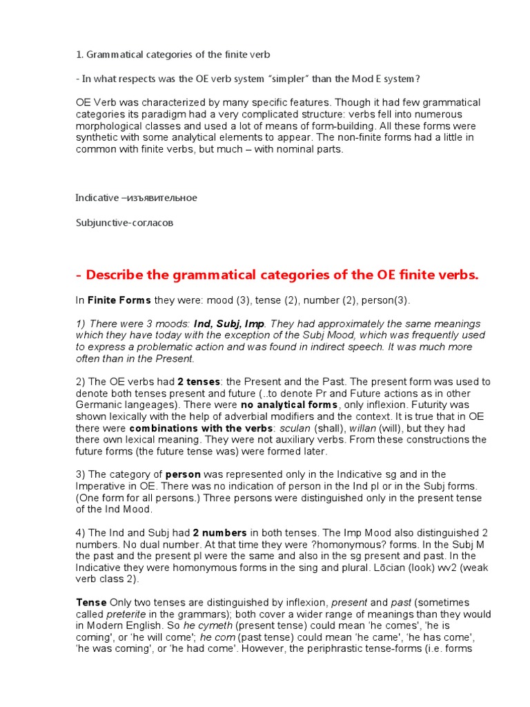 OE Verb was characterized by many specific features. Though it had few grammatical