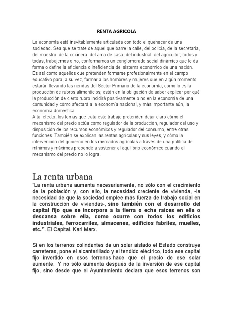 “La renta urbana aumenta necesariamente, no sólo con el crecimiento