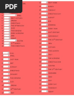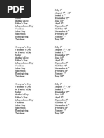 This list contains various dates and times including months, days of the week, holidays, and other events like a birthday and the end of a week without providing much additional context to understand their significance or relationship to one another.