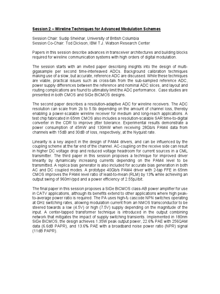 Session 2 – Wireline Techniques for Advanced Modulation Schemes