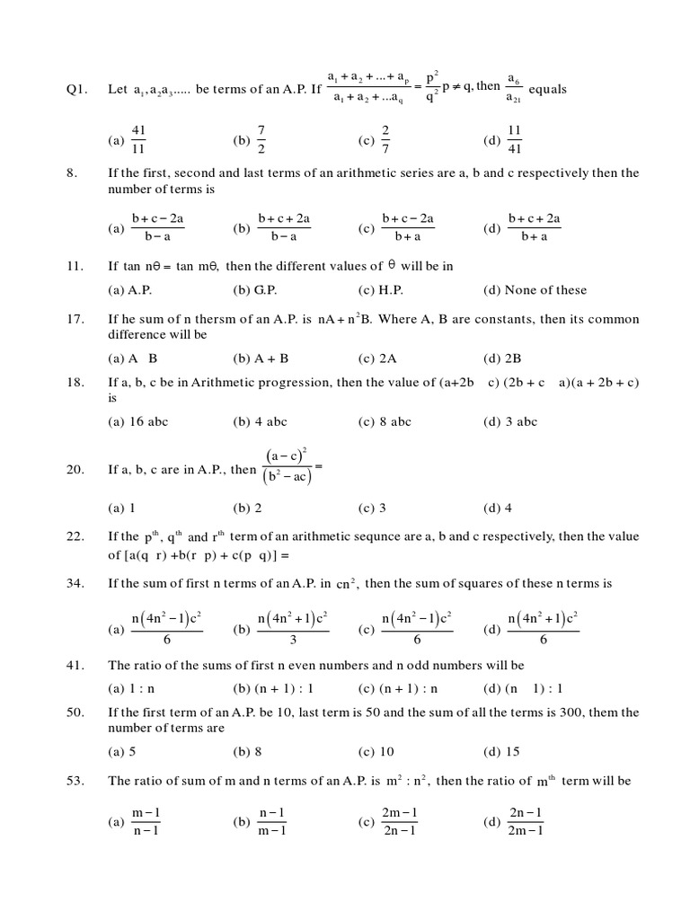 8. If the first, second and last terms of an arithmetic series are a, b and c respectively then the