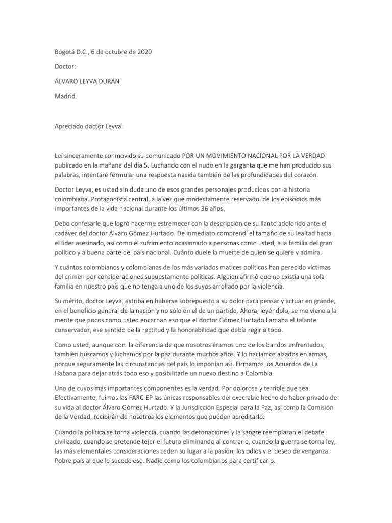 su vida al doctor Álvaro Gómez Hurtado. Y la Jurisdicción Especial para la Paz, así como la Comisión