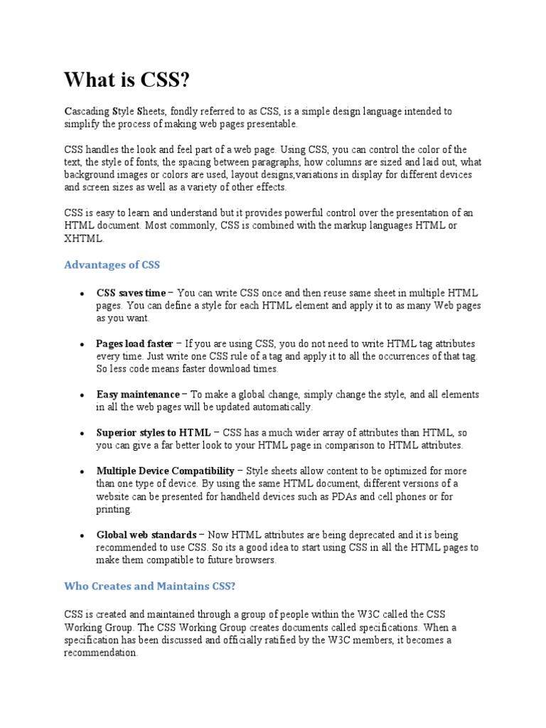 CSS is created and maintained through a group of people within the W3C called the CSS