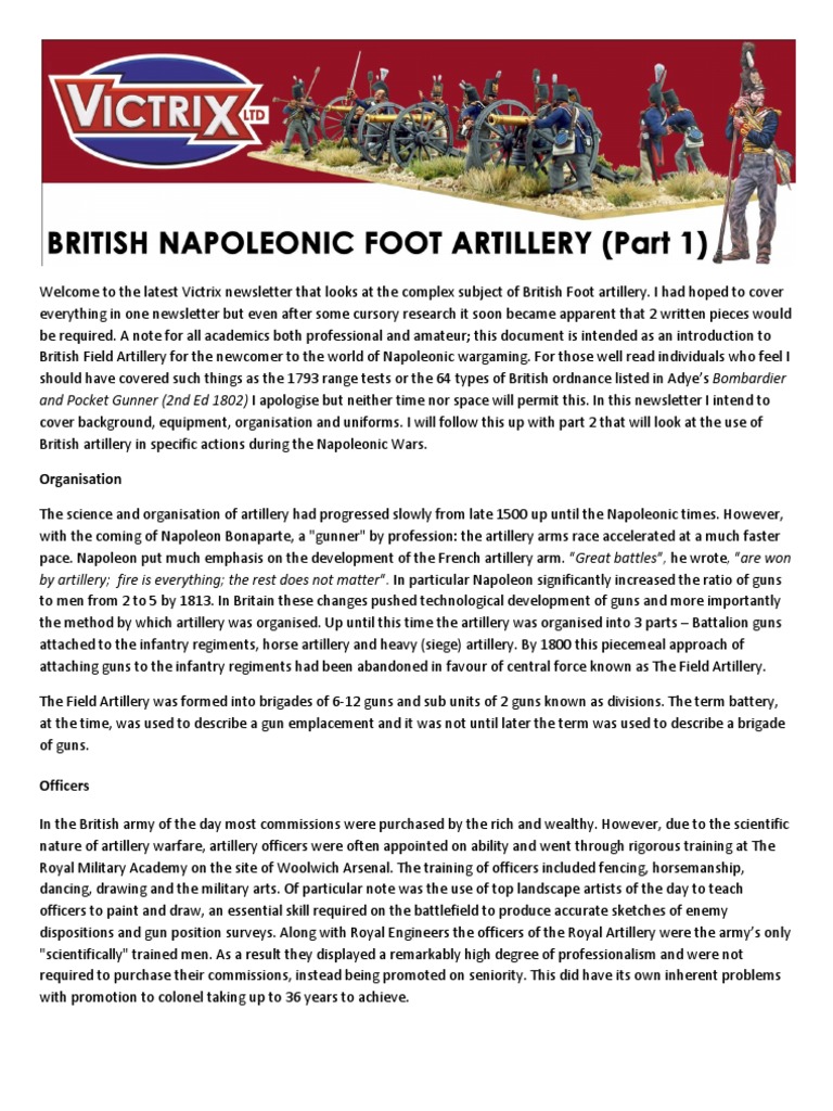 Welcome to the latest Victrix newsletter that looks at the complex subject of British Foot artillery.
