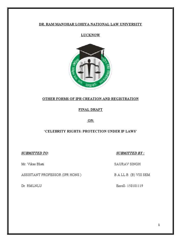 personality right, right of passing off, etc. are discussed.
