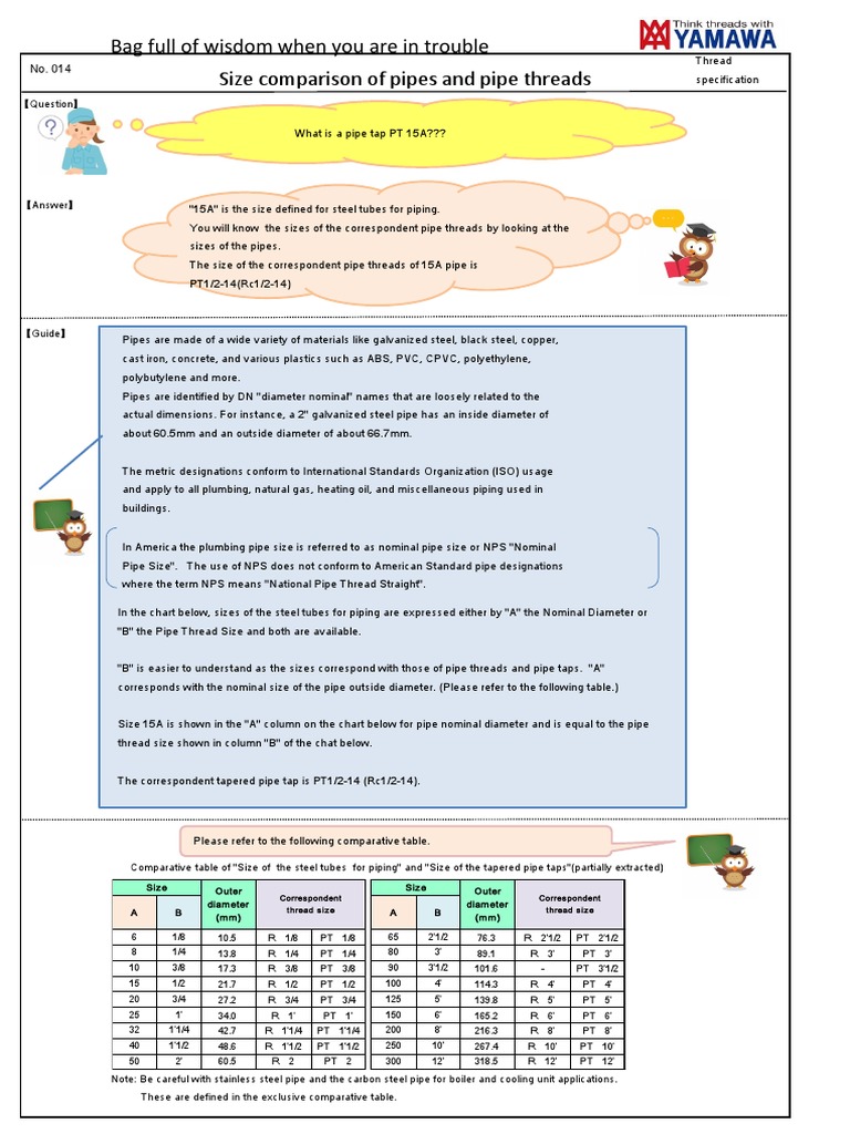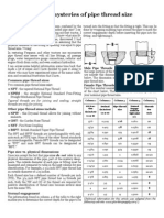 Size comparison of pipes and pipe threads specification