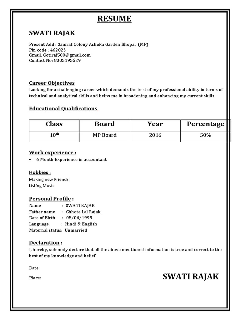 6 Month Experience in accountant