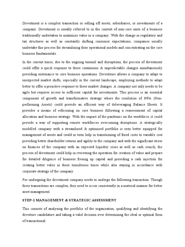 Assembling Divestiture Team: - This includes the creation of a team that could help in