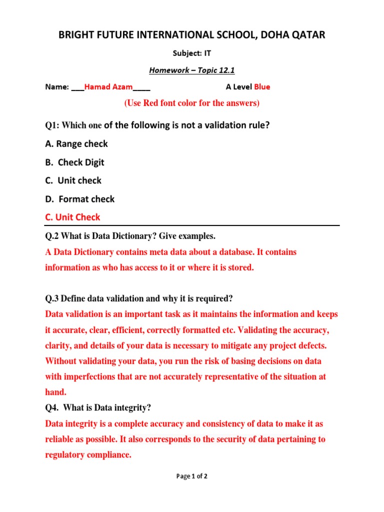 Q1: Which one of the following is not a validation rule?