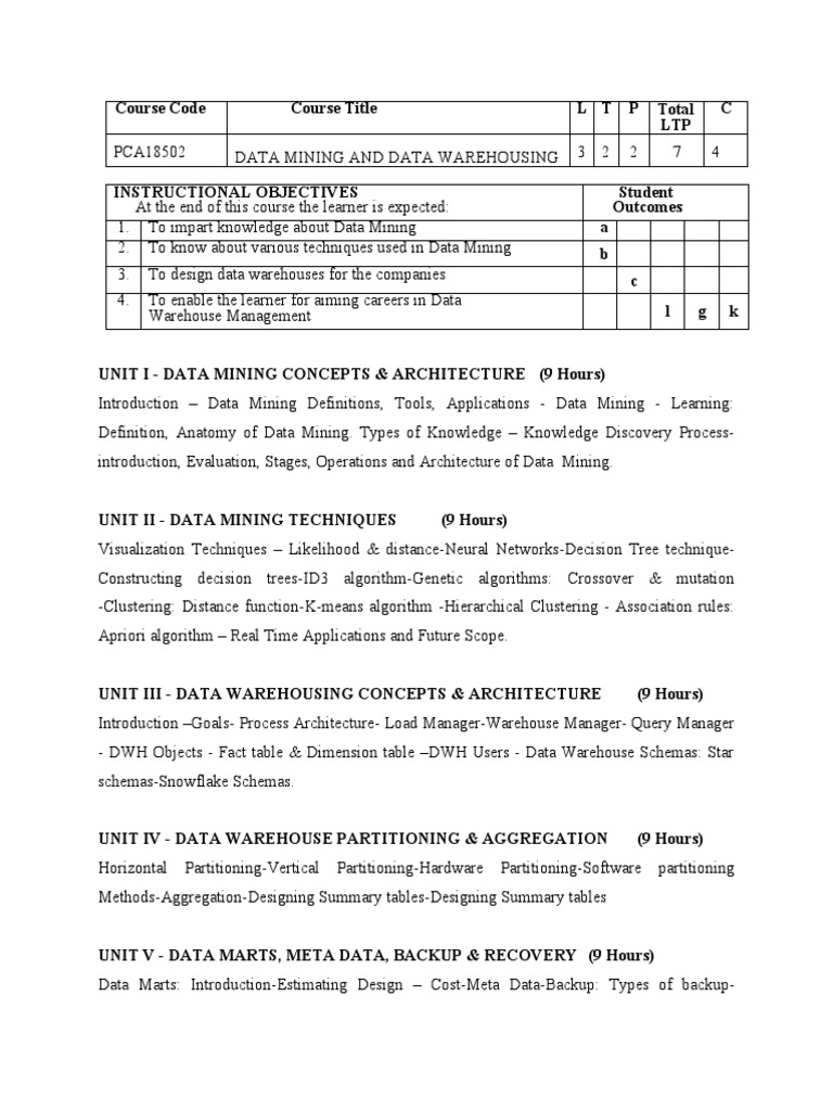 PCA18502 DATA MINING AND DATA WAREHOUSING 3 2 2 7 4