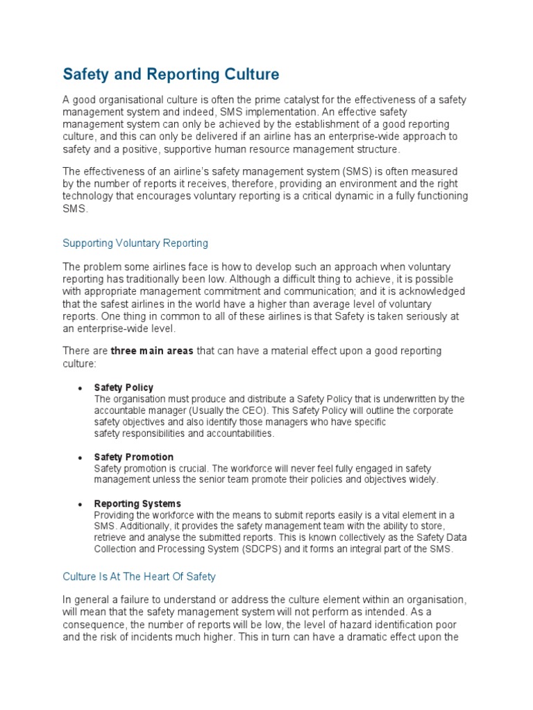 Safety and Reporting Culture