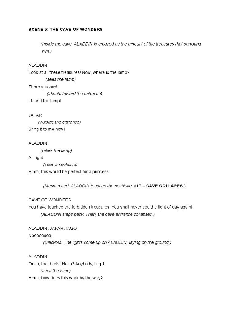 (Mesmerised, ALADDIN touches the necklace. #17 – CAVE COLLAPES.)
