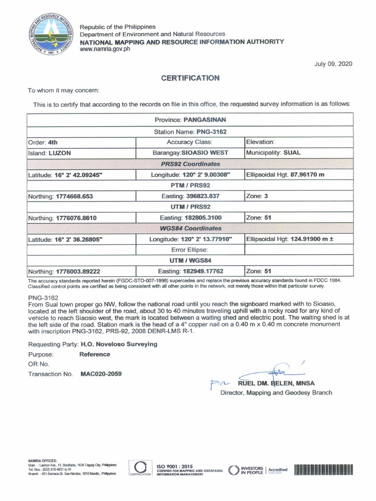 Latitude: 16° 2° 42.09245" Longitude: 120° 2" 9.00308" _[Ellipsoidal Hgt. 87.96170 m