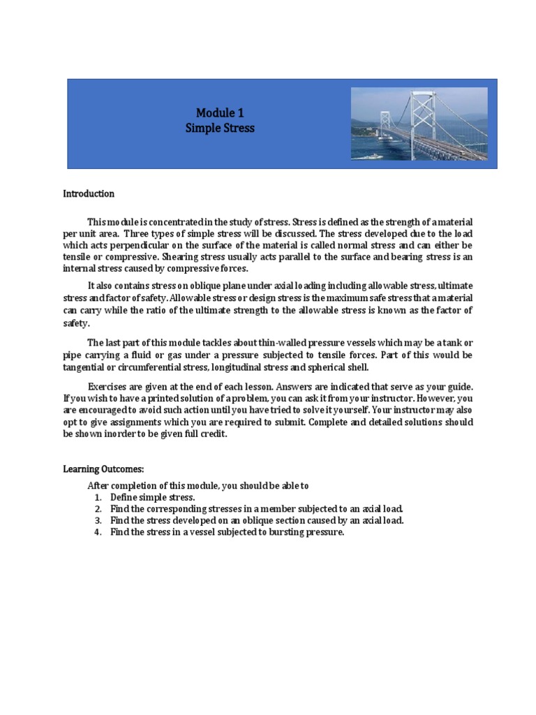 This module is concentrated in the study of stress. Stress is defined as the strength of a material