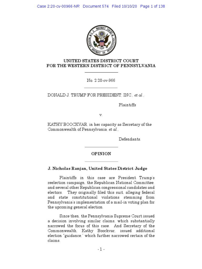Case 2:20-cv-00966-NR Document 574 Filed 10/10/20 Page 2 of 138