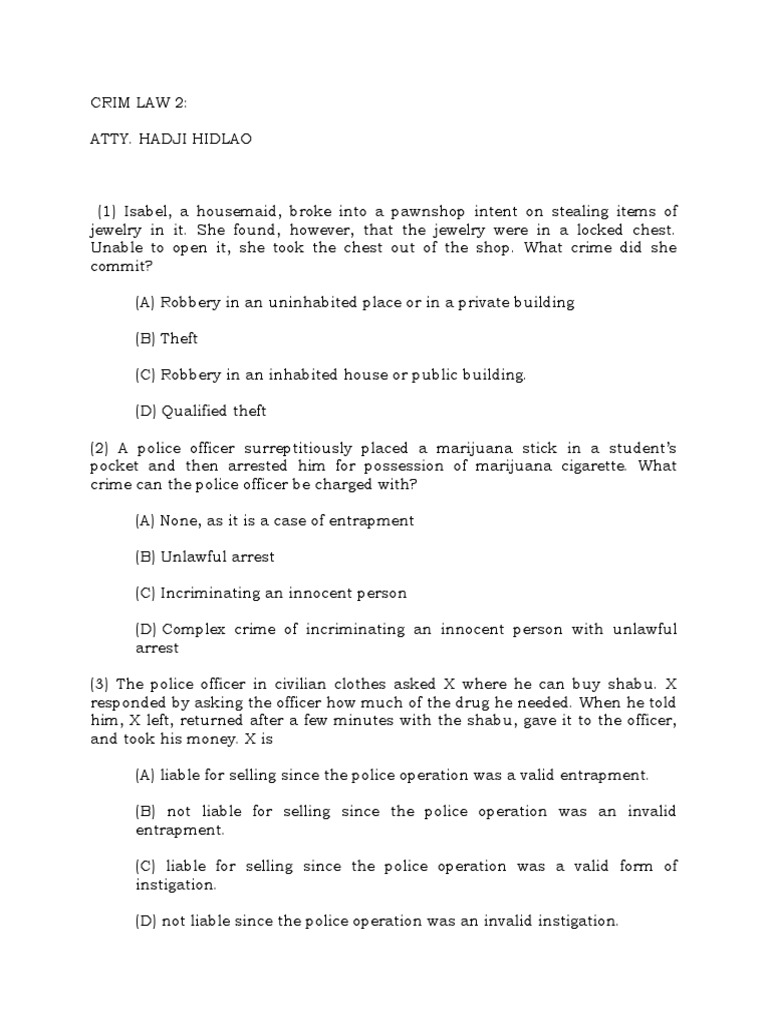 (3) The police officer in civilian clothes asked X where he can buy shabu. X