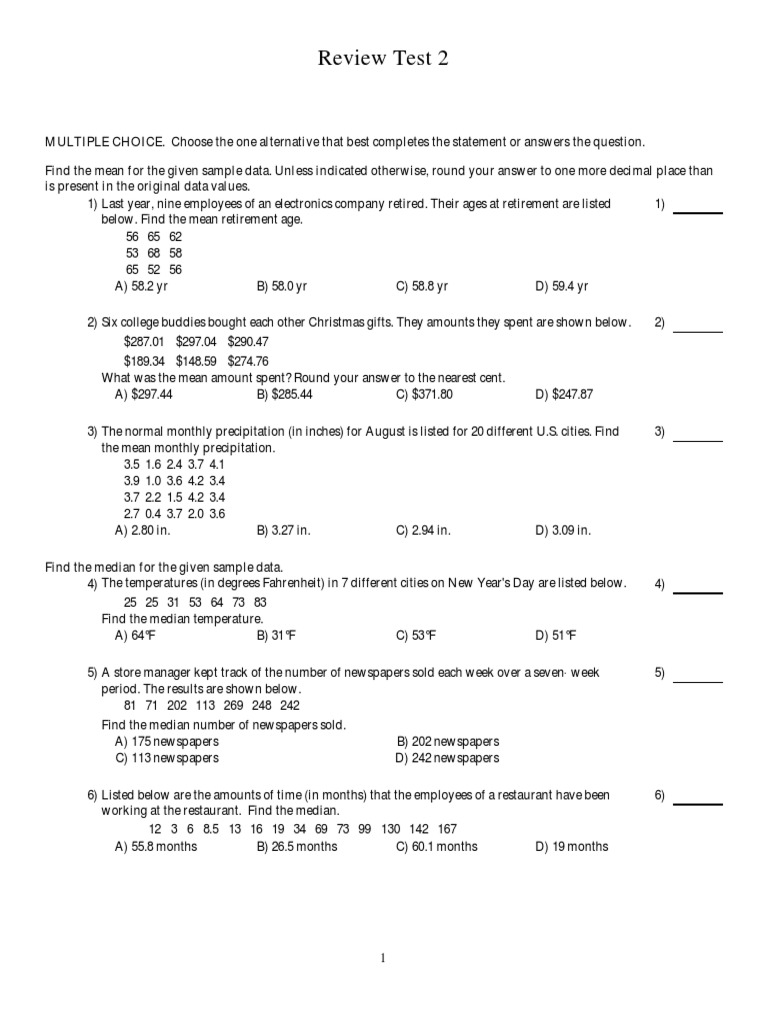 Statistical Analysis Review Test 2