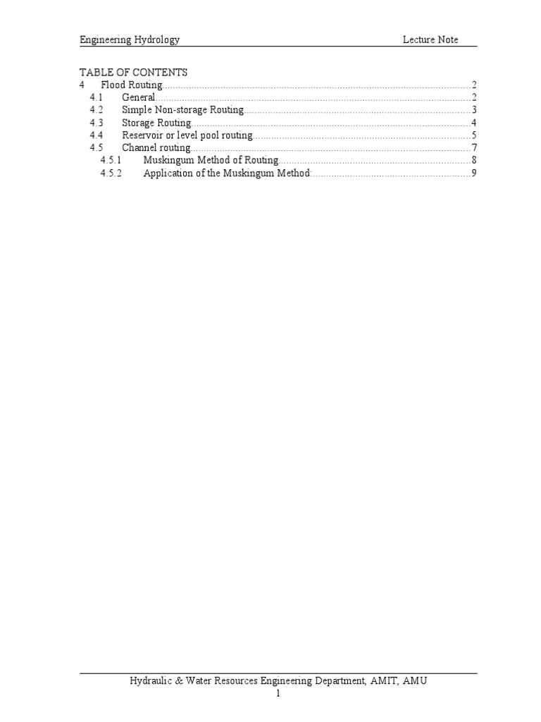 out flow discharge with time. This form of routing is essential (i) in the design of the