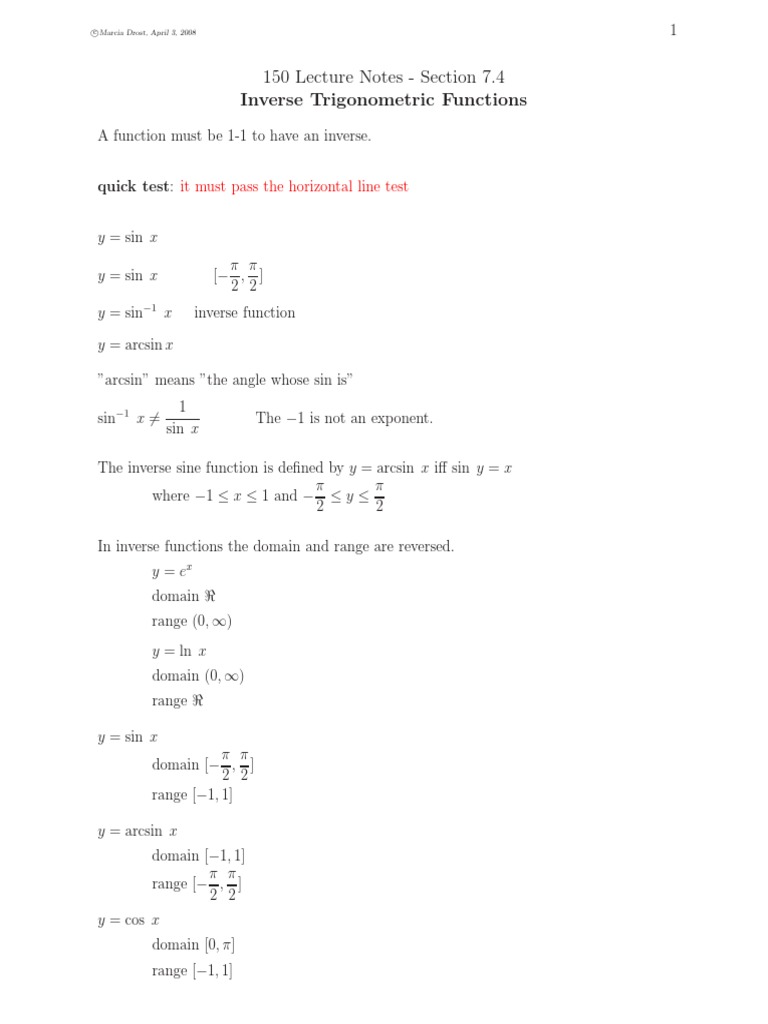 (a) if −1 ≤ x ≤ 1 and − ≤ y ≤ then sin (arcsin x) = x and arcsin (sin y) = y