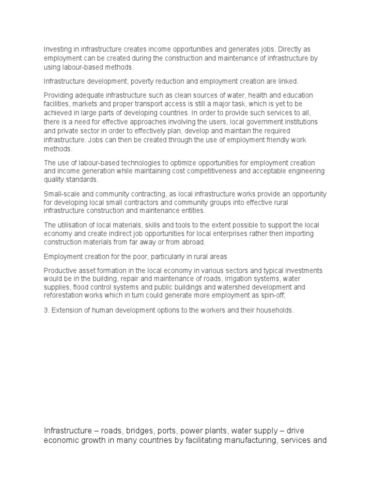 infrastructure. Jobs can then be created through the use of employment friendly work