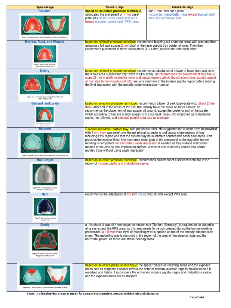 From: A Clinical Review of Spacer Design for Conventional Complete Denture Ashish R Jain and Dhanraj M