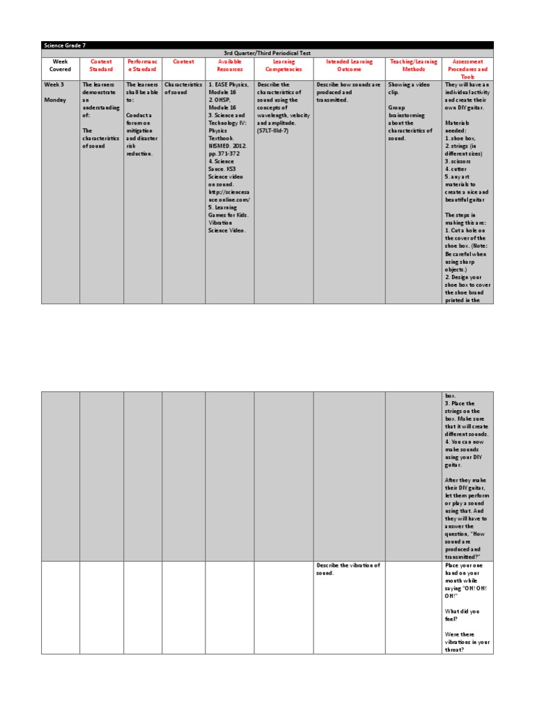 of sound risk NISMED. 2012. (S7LT-IIIe-8) wave?