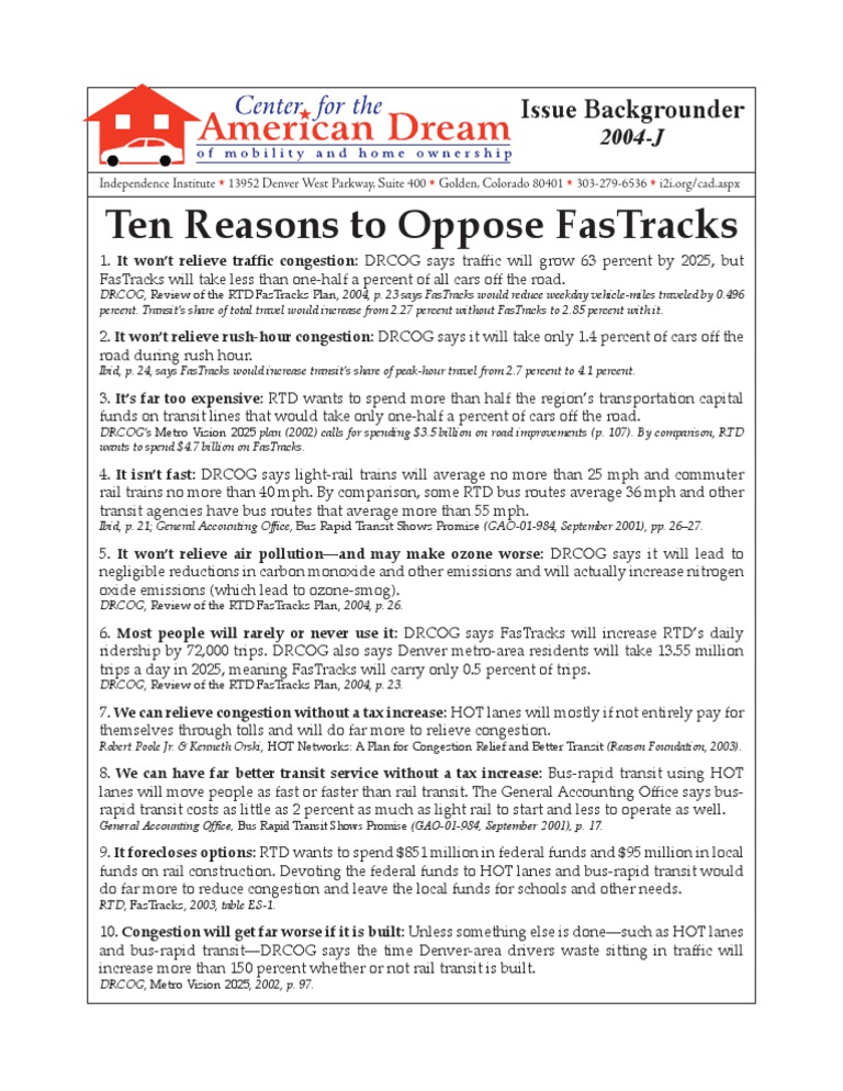 Ten Reasons To Oppose FasTracks
