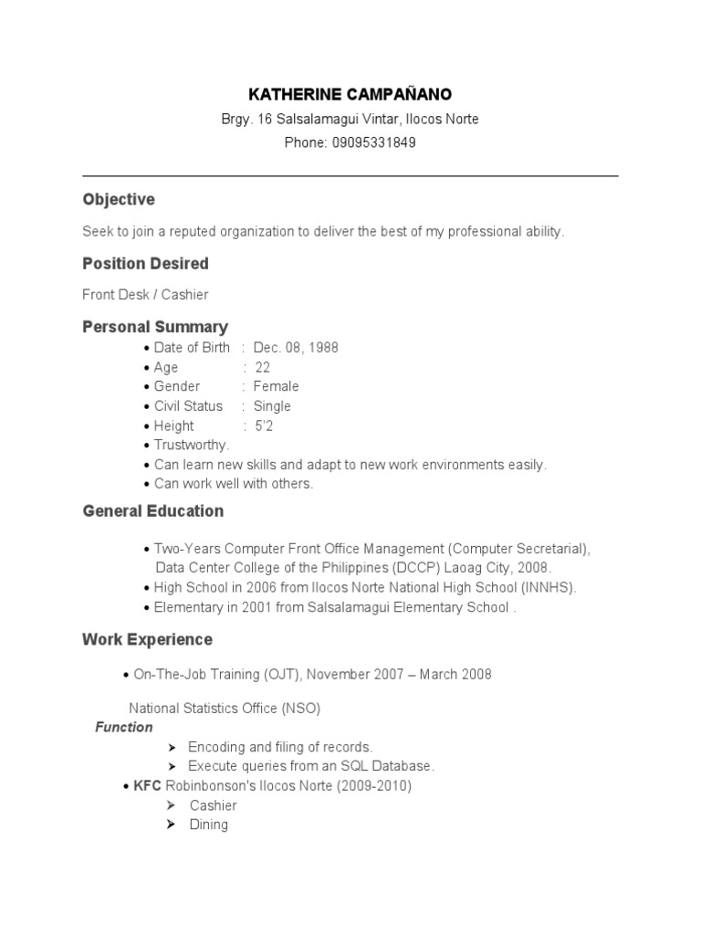 Position Desired