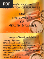ILLNESS Is a subjective state of not feeling well based on subjective appraisal, previous