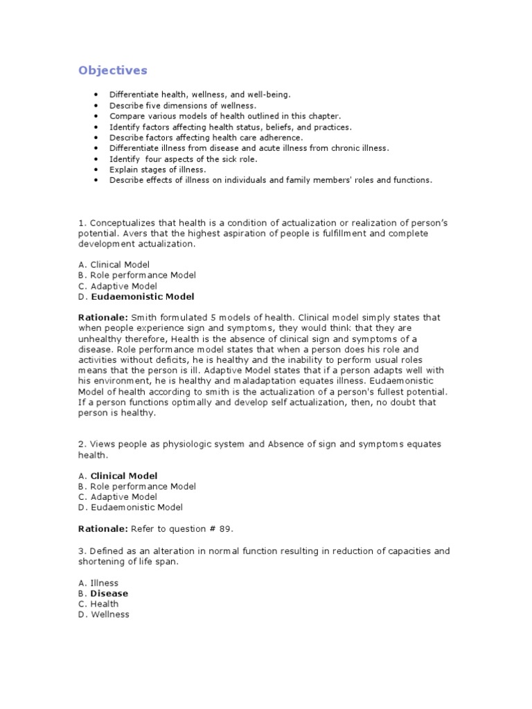 1. Conceptualizes that health is a condition of actualization or realization of person’s