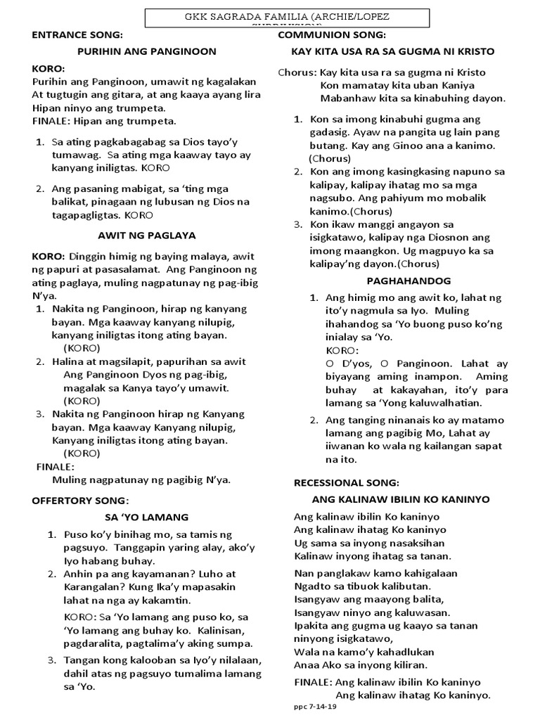 KORO: Sa ‘Yo lamang ang puso ko, sa Isangyaw ninyo ang kaluwasan.