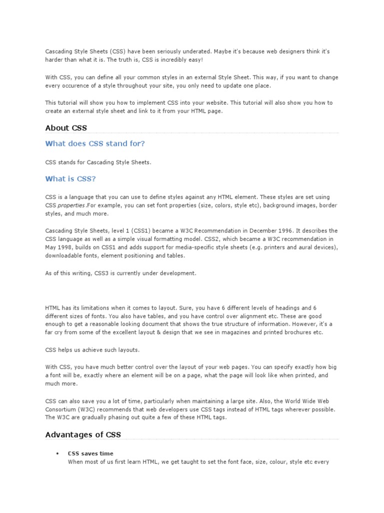 CSS language as well as a simple visual formatting model. CSS2, which became a W3C recommendation in