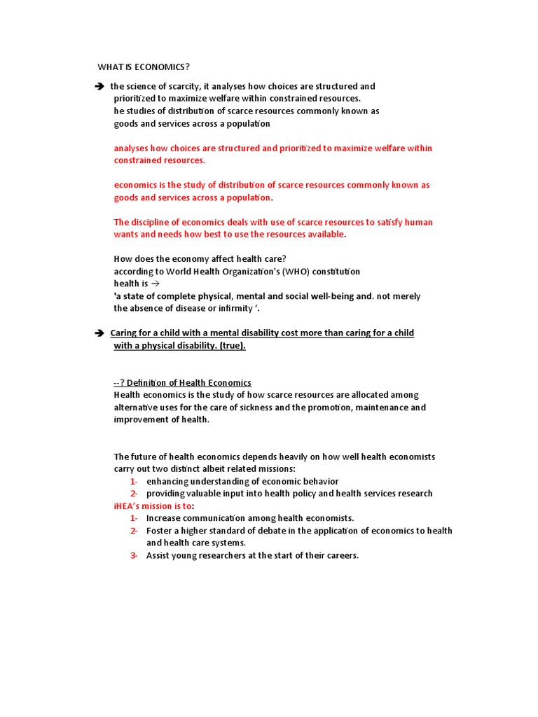 --? Definition of Health Economics