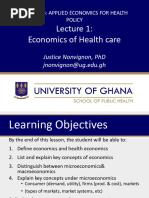Principles of health economics including: